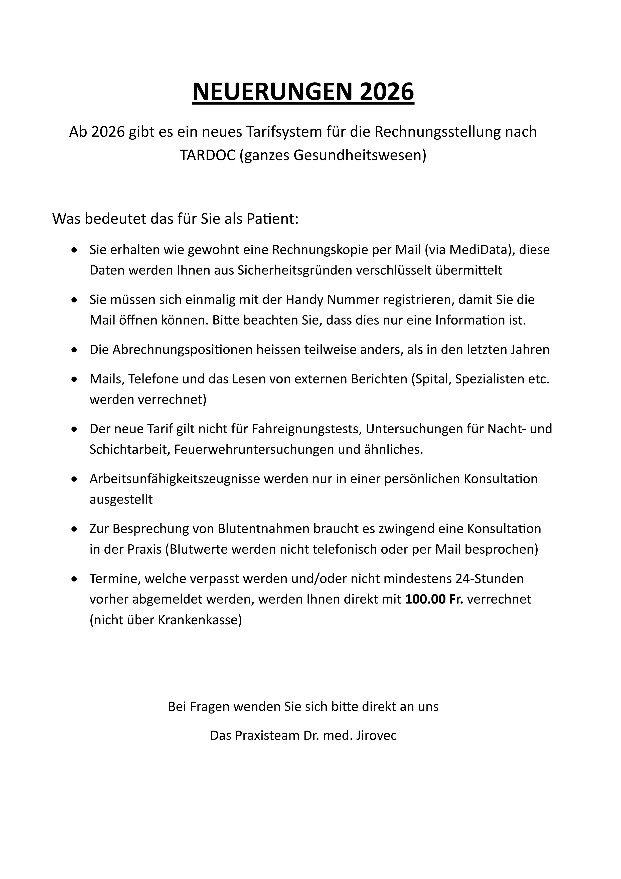 Herzlich willkommen in der Praxis Dr. med. Martin Jirovec in Besenbüren